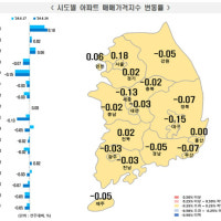 서울 아파트값이 14주 연속 오르고, 상승 폭은 더 커졌다. 서울 아파트값 오름세를 견인하면서 수도권 상승세도 강해졌다. 27일 한국부동산원의 6월... 23%→-0.18%)과 8개도(-0.01%→-0.03%)은 하락 폭이 확대됐다. 대구가 0.09% 떨어져 전 주 대비 하락 폭이 소폭 확대됐다. 광주와 경남도 0.02%, 0.06% 떨어졌다.