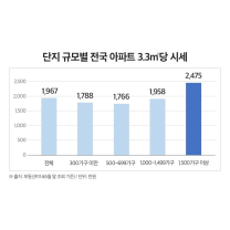단지 규모 클수록 비싸게 팔렸다...1500가구 이상 대단지 500만원 비싸