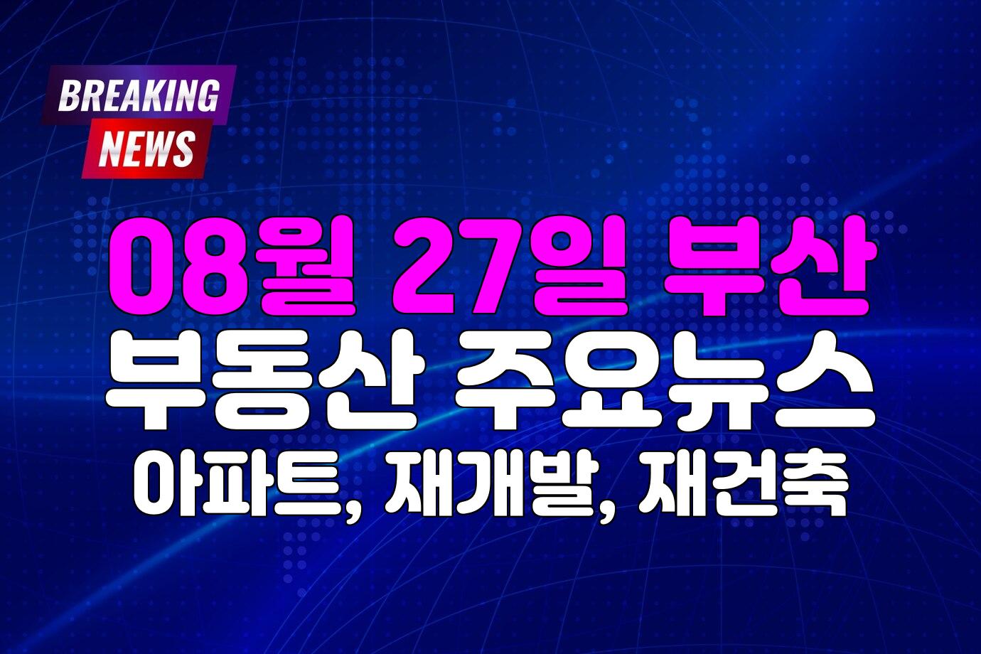 24년 08월 27일 오늘의 부산 부동산, 아파트, 재개발, 재건축, 북항, 센텀, 에코델타 관련 뉴스 - 발행일시: 24년 08월 27일 07:00:46
