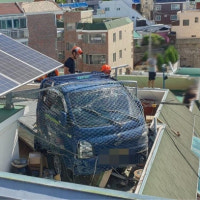 4. 부산에서 트럭이 주차된 차량을 들이받아 옥상에 떨어지는 사고 발생
