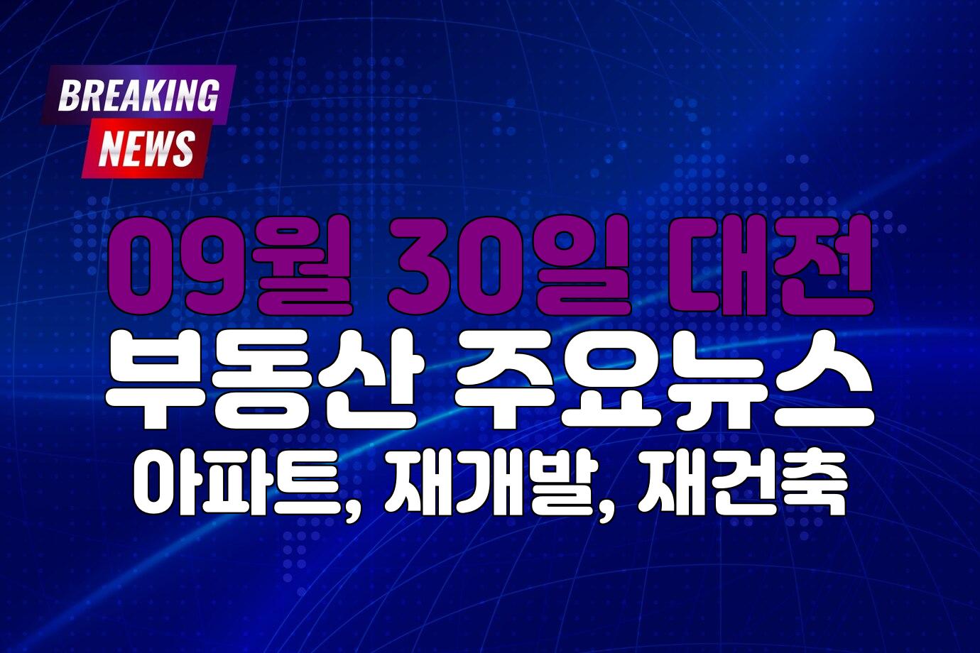 24년 09월 30일 오늘의 대전 부동산, 아파트, 재개발, 재건축 관련 뉴스 - 발행일시: 24년 09월 30일 07:01:04