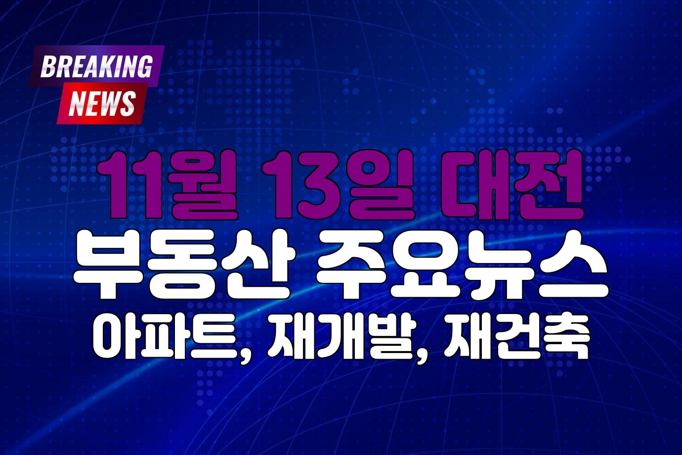 24년 11월 13일 오늘의 대전 부동산, 아파트, 재개발, 재건축 관련 뉴스 - 발행일시: 24년 11월 13일 07:01:22