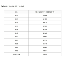 올해 부산의 아파트 매매 거래량은 지난 7월 33개월 만에 3000건을 넘긴 3159건을 기록하며 반등의 신호탄을 쏘는 듯했다. 하지만 이내 대출 규제 등의 여파로 8월 2711건, 9월 2280건으로 줄어 들었다가 가을 이사철을 맞아 3019건으로 일부 회복하는 모습을 보이고 있다. 12월 둘째 주 부산의 아파트값은 전주에...
