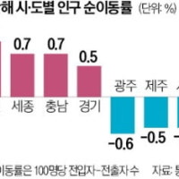 국내 이동자 수 4년 만에 반등… 인천·세종 인구 순유입, 광주·제주선...