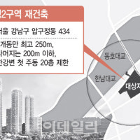 지난달 27일까지 주민 열람공고를 진행한 성수전략정비구역 재개발 정비계획 변경안에도 이와 동일한 조건이 달렸다. 1~4구역 모두 당초 150m 이하로... 향후 압구정3~5구역 재건축 정비계획에도 서울시의 이같은 조건이 그대로 반영될 가능성이 높다. 지난해 하반기 각각 진행한 열람공고에 따르면 3구역은...