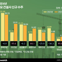 대우건설 관계자는 "성남 수진1구역 재개발, 부산 남천동 주상복합, 서울 여의도 공작아파트 재건축 등 국내 수주 비중이 컸다"며 "기대했던 해외 수주는 다소 이연돼 올해 수주 확대로 이어질 전망"이라고 설명했다. DL이앤씨는 신규 수주가 2023년 14조8894억원에서 지난해 9조4805억원으로 36.3...